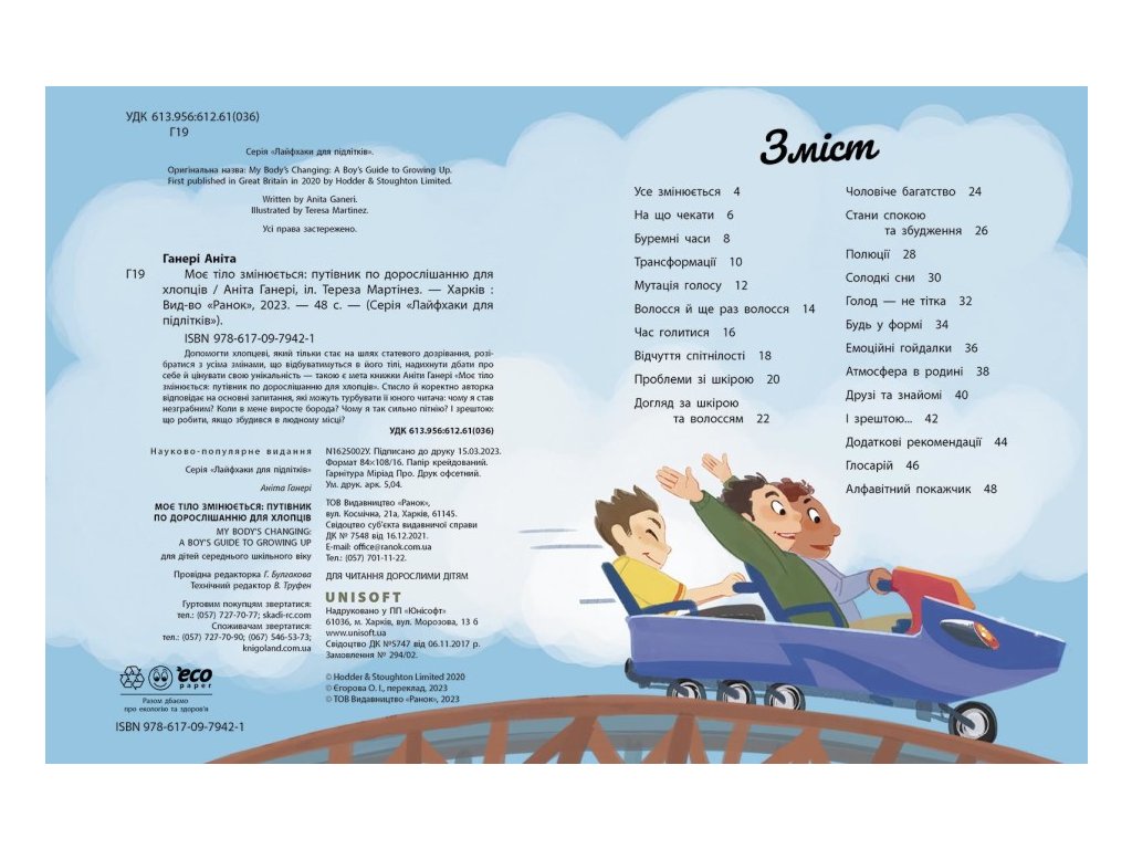 З'ясуй, що саме відбувається з твоїм тілом зсередини й зовні: чому ламається голос і з’являється волосся на тілі, чому ти можеш прокинутися у вологій постелі, але це не означатиме, що ти обмочився, і зрештою, чому твоя самооцінка стрибає від «я король світу» до «який же я незграба»?